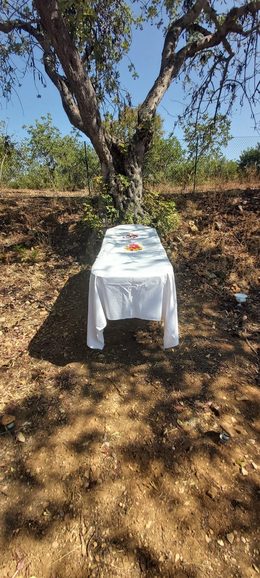 É um banho preparado no meio da Natureza, com flores, óleos de essências e códigos celestiais, canalizados para o próprio cliente.